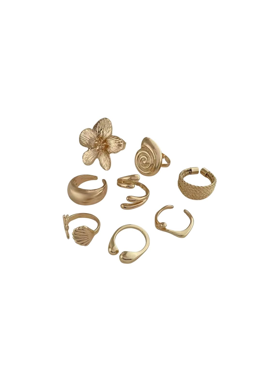 تصميم بوهيمي أنيق بلمسة عتيقة، باللونين الذهبي والفضي، مع خواتم مفتوحة قابلة للتعديل لتناسب مختلف المقاسات. مثالي لعشاق الأسلوب الحر وإطلالات العطلات والمناسبات الصيفية على الشاطئ