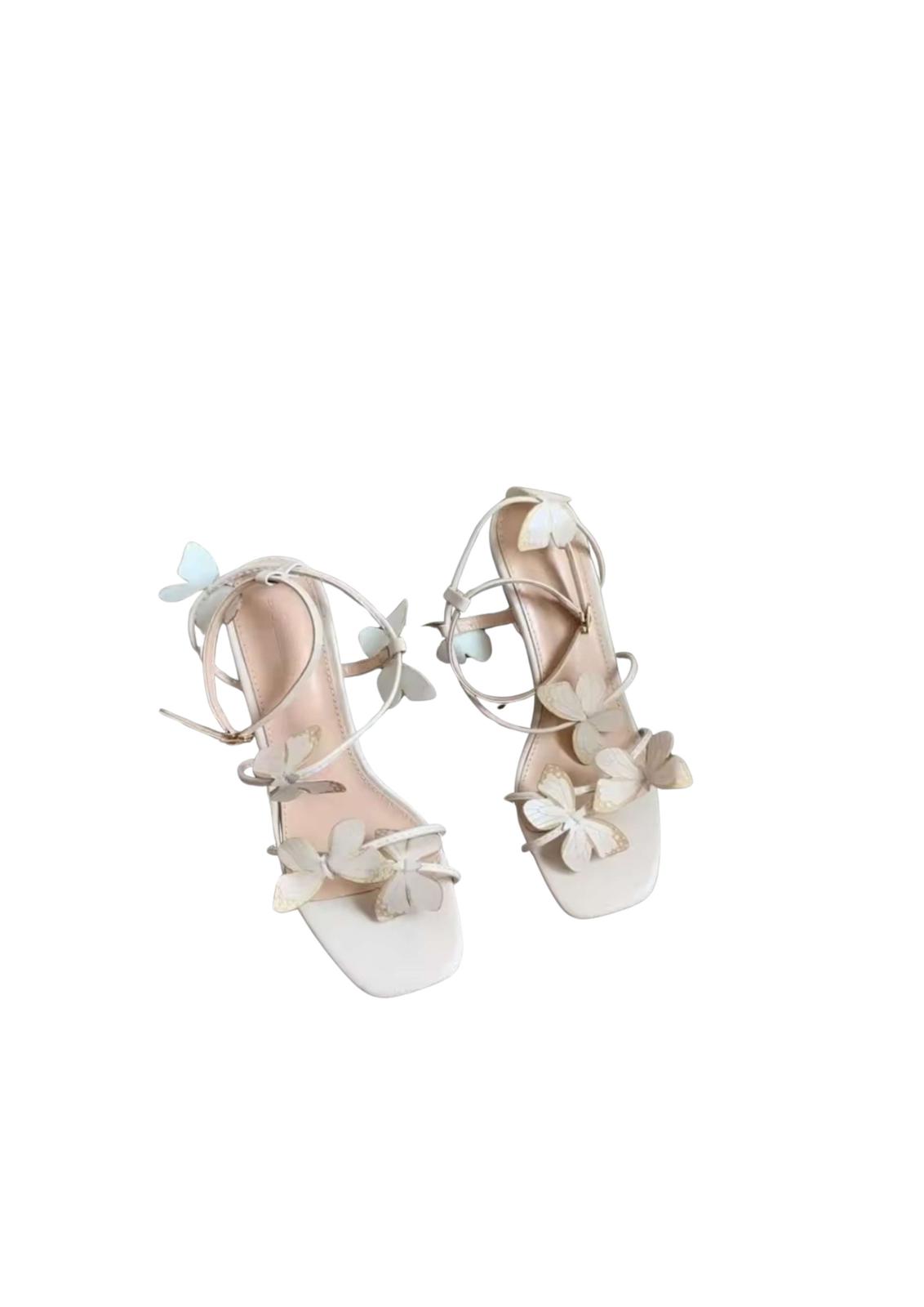 حذاء أنيق بكعب مريح وتصميم أنثوي مزين بفراشات ثلاثية الأبعاد تمنح قدميك لمسة من الخفة والرومانسية 🦋.