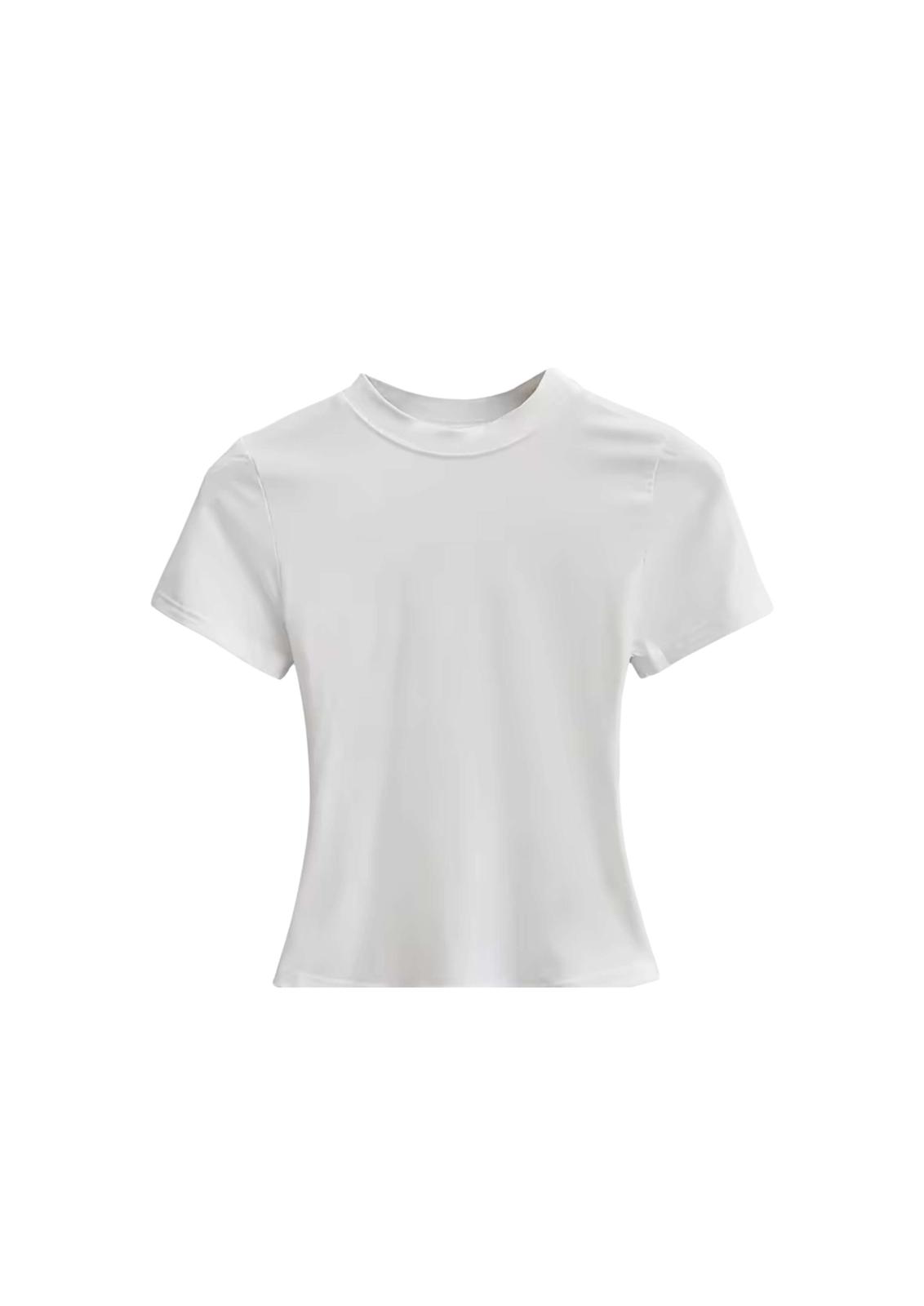توب بسيط بلون أبيض ناصع، بقصة قريبة للجسم تبرز جمال القوام، يضفي لمسة نقاء ويجعل باقي الألوان تشرق أكثر.